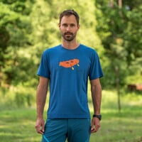 Men's WABI T-shirt is made of a modal and polyester blend. Modal is a natural material, a type of viscose produced from the cellulose of beech wood. The modal fibre is pleasant to the touch, the material is very light, airy, breathable and also wicks away sweat. The T-shirt has a round neckline and a loose fit that ensures maximum comfort. You can use it for expeditions in the mountains or rivers, but also for everyday wear in the city.