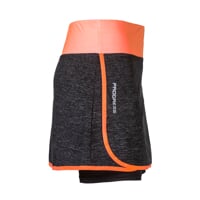 94% Polyester + 6% Elasthan (Innenshorts) / 84% Polyester + 16% Elasthan (Außenrock)
